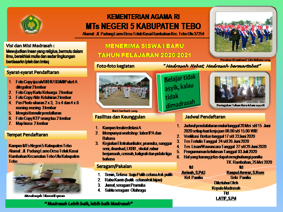 MTs NEGERI 5 TEBO MENERIMA PESERTA DIDIK BARU TP. 2020-2021