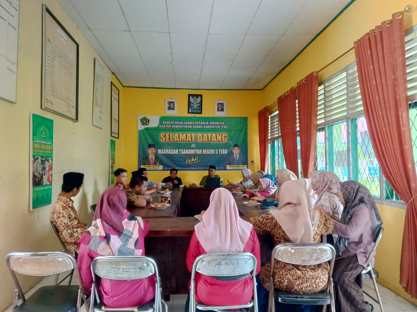 Tebo, 10 Januari 2025 – MTsN 5 Tebo mengadakan rapat pembagian tugas untuk semester genap tahun pelajaran 2024/2025. Rapat yang berlangsung di ruang rapat madrasah ini dipimpin langsung oleh Kepala Madrasah, Bapak Ade Musthafa, M.Pd. Acara tersebut dihadiri oleh seluruh tenaga pengajar dan staf administratif di MTsN 5 Tebo.