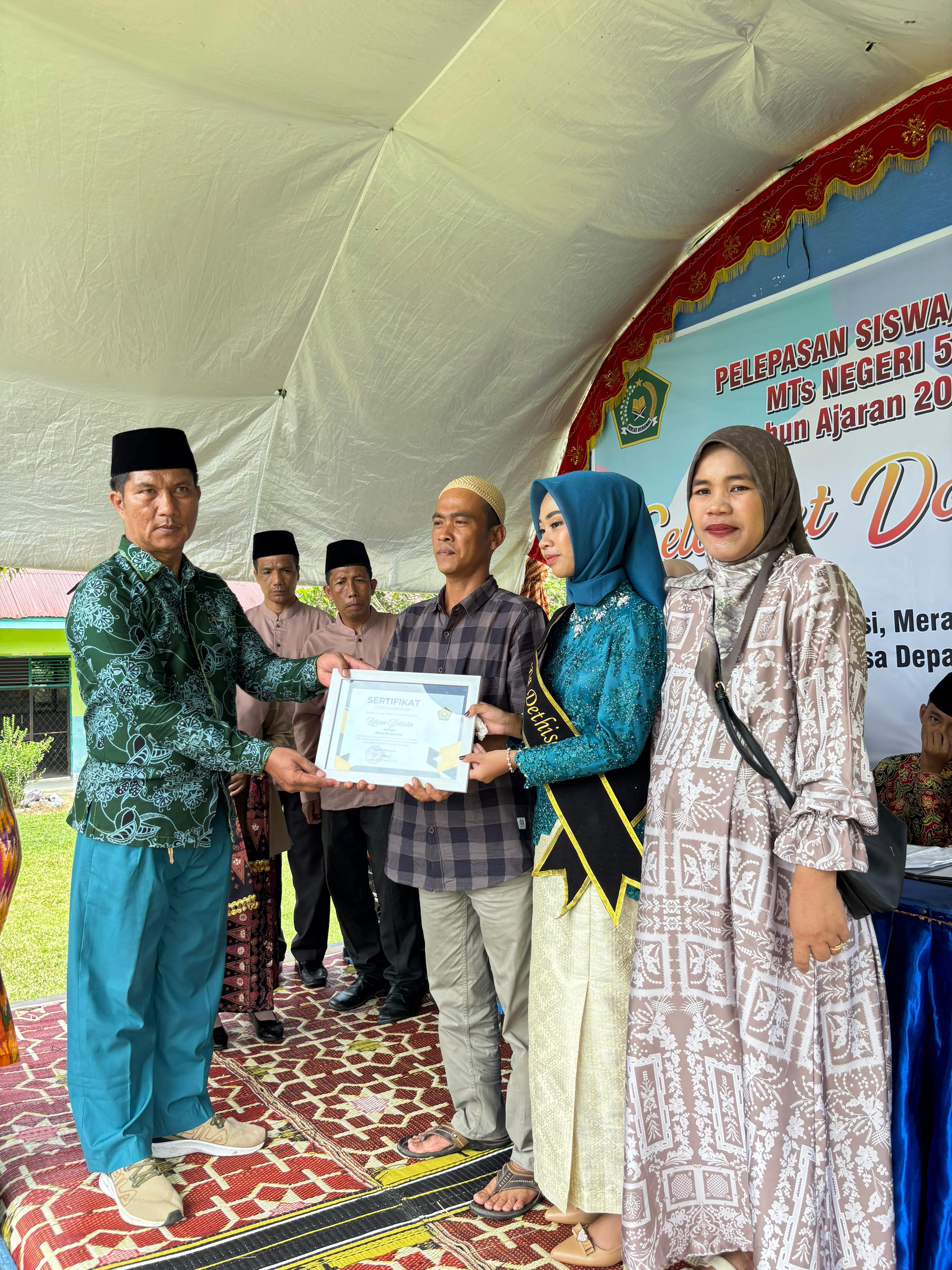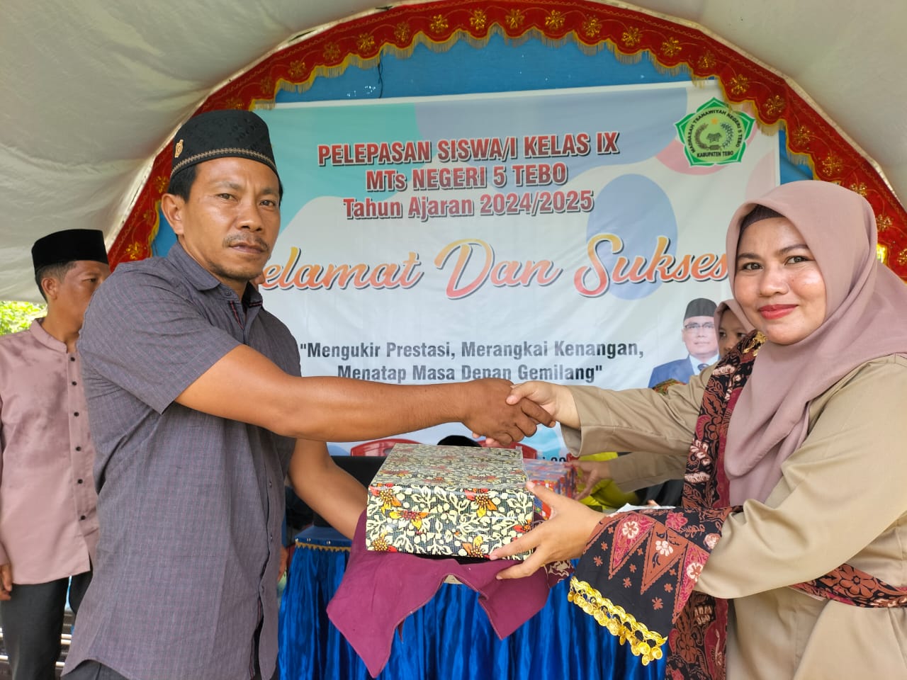 Tebo, 22 Mei 2025 – Madrasah Tsanawiyah Negeri (MTsN) 5 Tebo melaksanakan kegiatan pelepasan siswa kelas IX Tahun Pelajaran 2024/2025 pada Kamis, 22 Mei 2025. Acara berlangsung khidmat dan meriah meskipun Kepala Madrasah, Bapak Ade Musthafa, M.Pd., masih dalam masa pemulihan kesehatan di RS M. Djamil Kota Padang.