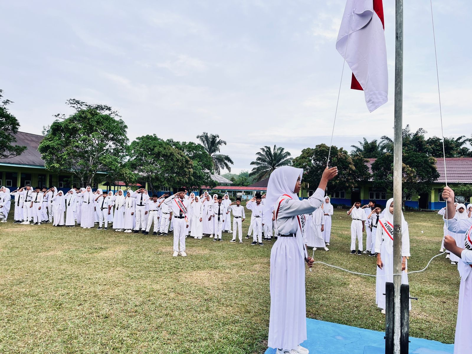 Tebo, 11 Agustus 2025 Upacara bendera hari Senin yang dilaksanakan pada tanggal 11 Agustus 2025 di halaman MTsN 5 Tebo berlangsung dengan tertib dan khidmat. Kegiatan ini merupakan bagian dari rutinitas madrasah yang bertujuan menanamkan nilai-nilai kedisiplinan, nasionalisme, dan tanggung jawab kepada para siswa.