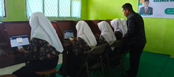 Sebanyak 48 siswa kelas VIII mengikuti ANBK hari ini yang terbagi ke dalam tiga sesi. Kegiatan berlangsung di laboratorium komputer madrasah dengan dukungan penuh dari panitia dan tim teknis.
