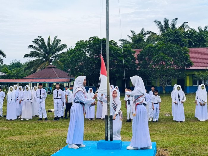 Tebo, 15 September 2025 MTsN 5 Tebo kembali melaksanakan upacara bendera rutin pada hari Senin yang berlangsung di lapangan utama madrasah. Bertindak sebagai pembina upacara kali ini adalah Ibu Henni Kurnia, S.Pd.I, yang dalam amanatnya menyampaikan pesan penting kepada seluruh peserta didik.