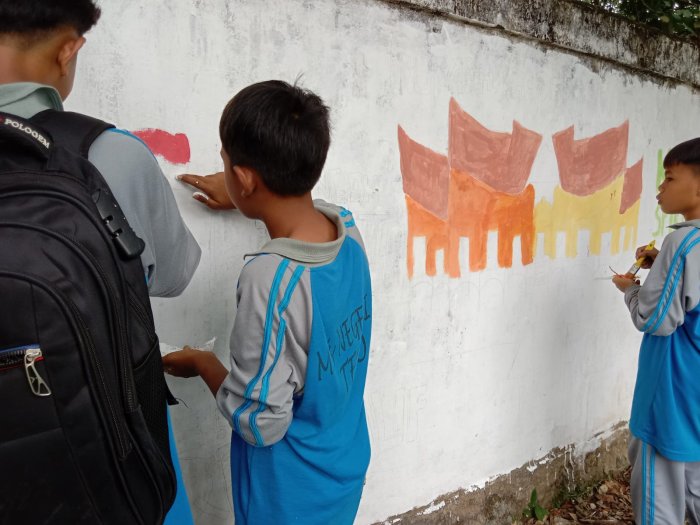 Di bawah bimbingan Ketua Tim Fasilitator, Bapak Ginajar Haris Saputro, S.Pd., kegiatan berlangsung dengan suasana gotong royong dan antusias. Para siswa mengekspresikan kreativitas mereka melalui warna-warna cerah dan gambar bertema lingkungan yang menghiasi pagar madrasah. Selain memperindah lingkungan sekolah, kegiatan ini juga menumbuhkan rasa tanggung jawab dan kepedulian terhadap kebersihan serta keindahan madrasah.