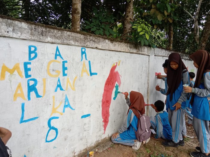 Tebo, 8 November 2025 Siswa kelas VII MTsN 5 Tebo melaksanakan kegiatan Projek Penguatan Profil Pelajar Pancasila dan Rahmatan lil Alamin (P5RA) dengan penuh semangat. Pada kegiatan kali ini, para siswa bersama guru fasilitator melakukan kegiatan mewarnai dan memberi gambar pada pagar madrasah. Kegiatan ini mengusung tema Gaya Hidup Berkelanjutan dengan projek Menjaga Kebersihan, Keindahan, dan Kelestarian Lingkungan Madrasah.