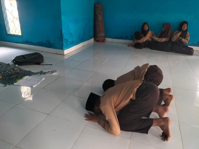 Suasana praktik salat berlangsung khidmat dan disiplin. Para siswa mengikuti arahan dengan antusias dan menunjukkan kesungguhan dalam mempraktikkan salat. Melalui kegiatan ini, siswa diharapkan dapat lebih mudah memahami materi pelajaran Fikih serta meningkatkan rasa percaya diri dalam melaksanakan ibadah salat sehari-hari.
