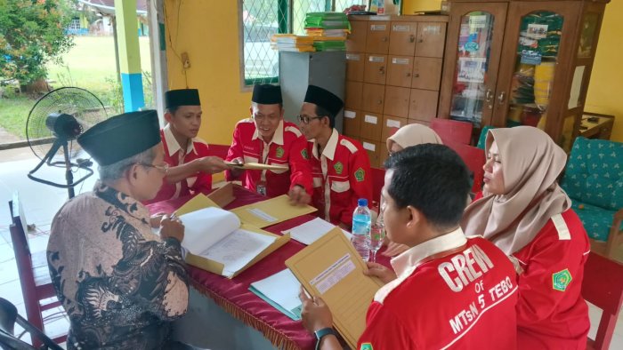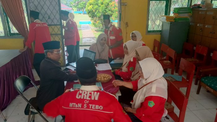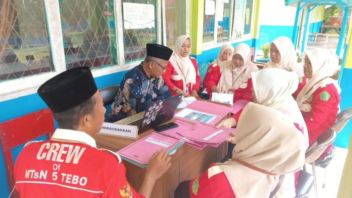 Tebo Kepala Madrasah Tsanawiyah Negeri (MTsN) 5 Tebo Ade Musthafa, M.Pd hari ini, Jumat (12/12/2025), menjalani kegiatan Penilaian Kinerja Kepala Madrasah (PKKM) yang berlangsung di kantor MTsN 5 Tebo. Penilaian dimulai pukul 08.00 dan berakhir pada 14.30 WIB.