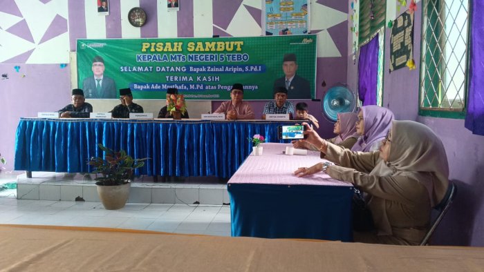 MTsN 5 Tebo mengadakan acara pisah sambut Kepala Madrasah pada Sabtu, 20 Desember 2025. Kegiatan ini berlangsung di ruang madrasah MTsN 5 Tebo dan menjadi momen penting dalam proses serah terima jabatan dari kepala madrasah lama, Ade Musthafa, M.Pd, kepada kepala madrasah yang baru, Zainal Aripin, S.Pd.I.