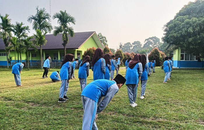 Senam pagi dilaksanakan sebagai upaya menjaga kebugaran jasmani dan meningkatkan semangat belajar siswa. Seluruh peserta tampak antusias mengikuti setiap gerakan senam yang dipandu oleh instruktur, sehingga suasana pagi terasa lebih segar dan penuh semangat.